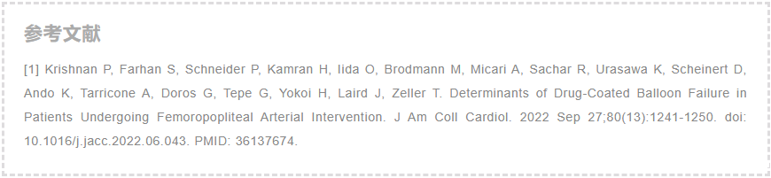 研究人员从目前的研究中调查了股腘动脉DCB治疗失败的预测因素得出以下结论: