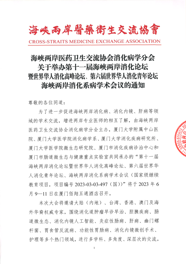 关于举办第十一届海峡两岸消化论坛的通知